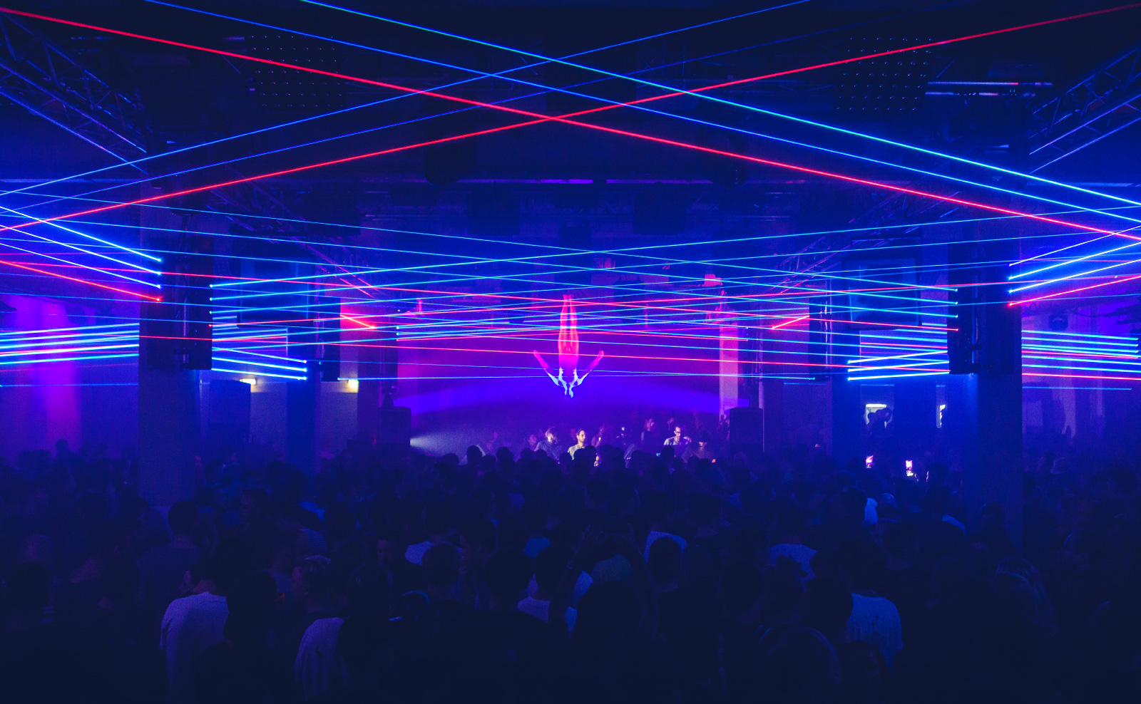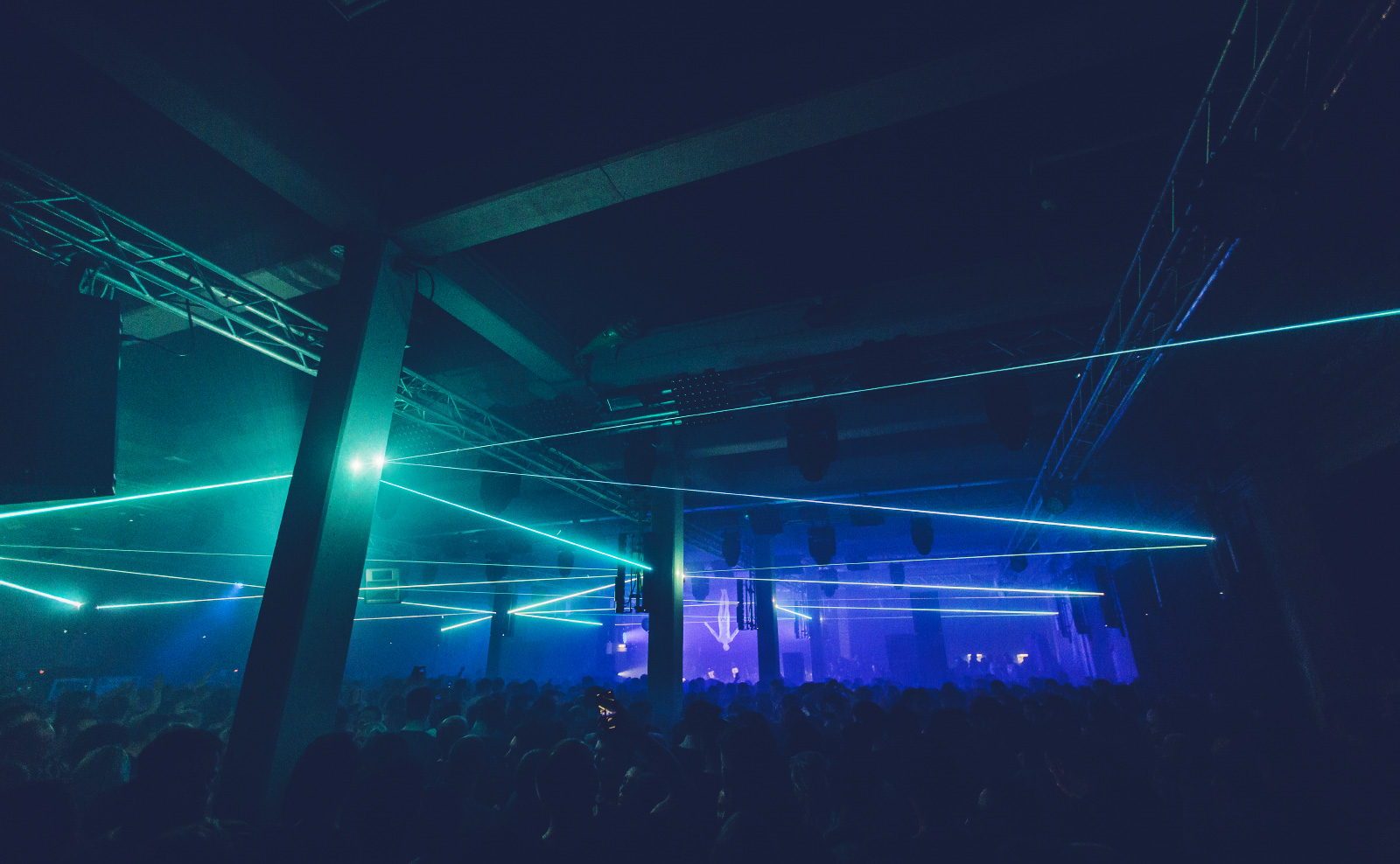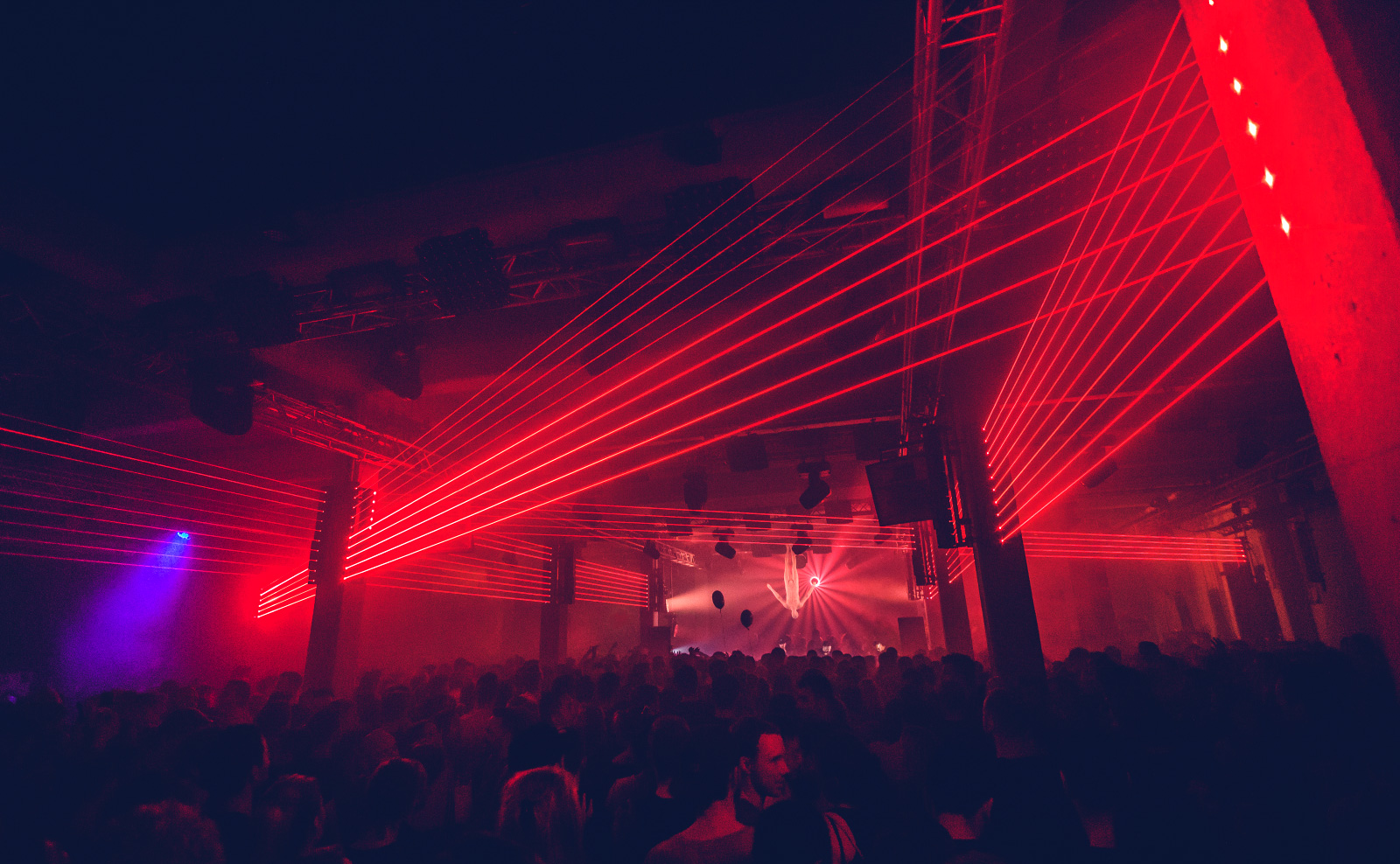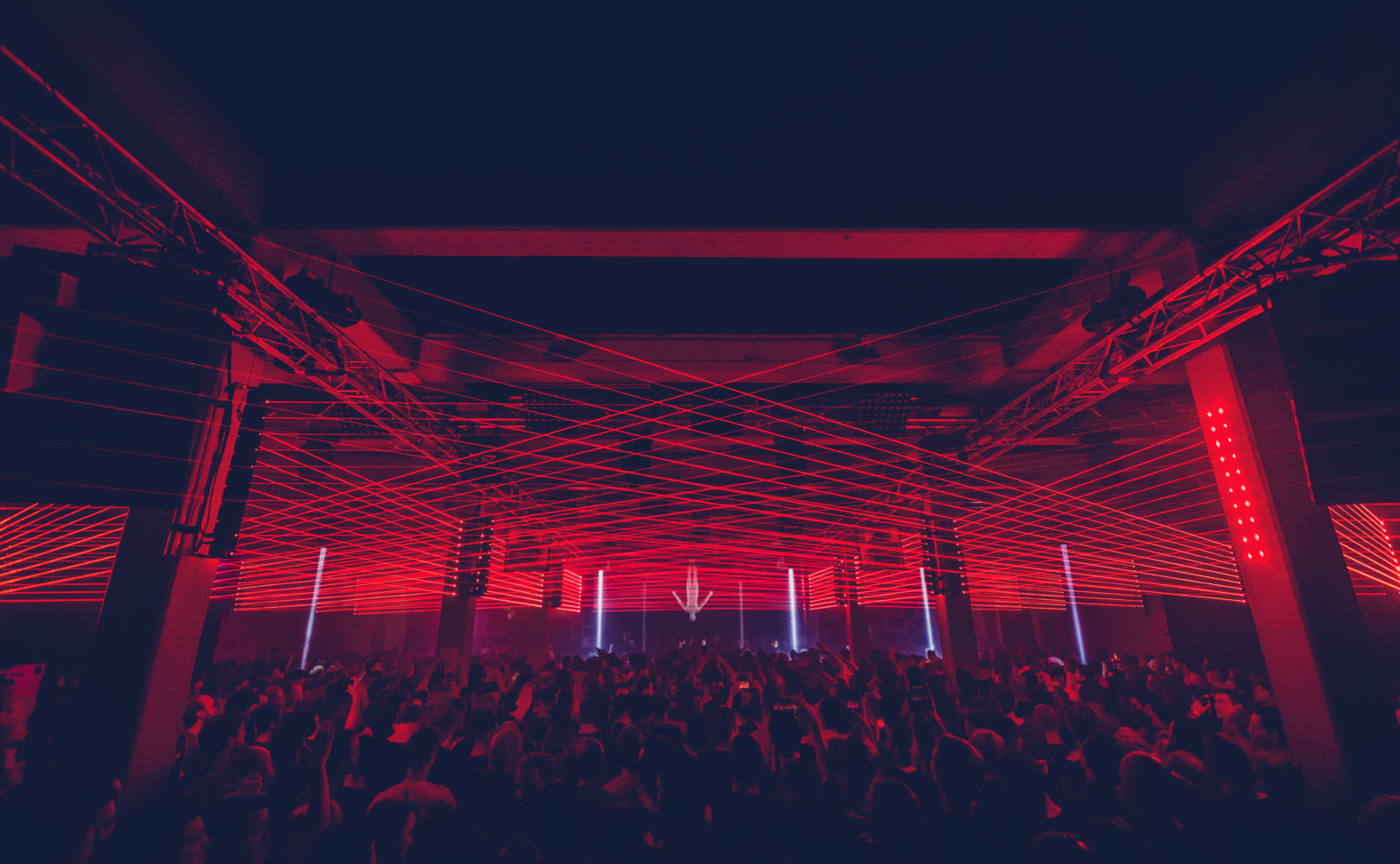Nocte created a unique design for the Afterlife "Amsterdam Dance Event" at the Warehouse Elementenstraat. A network of lasers overtook the space uniting the DJs, clubbers and the environment under a complex arrangement of light.