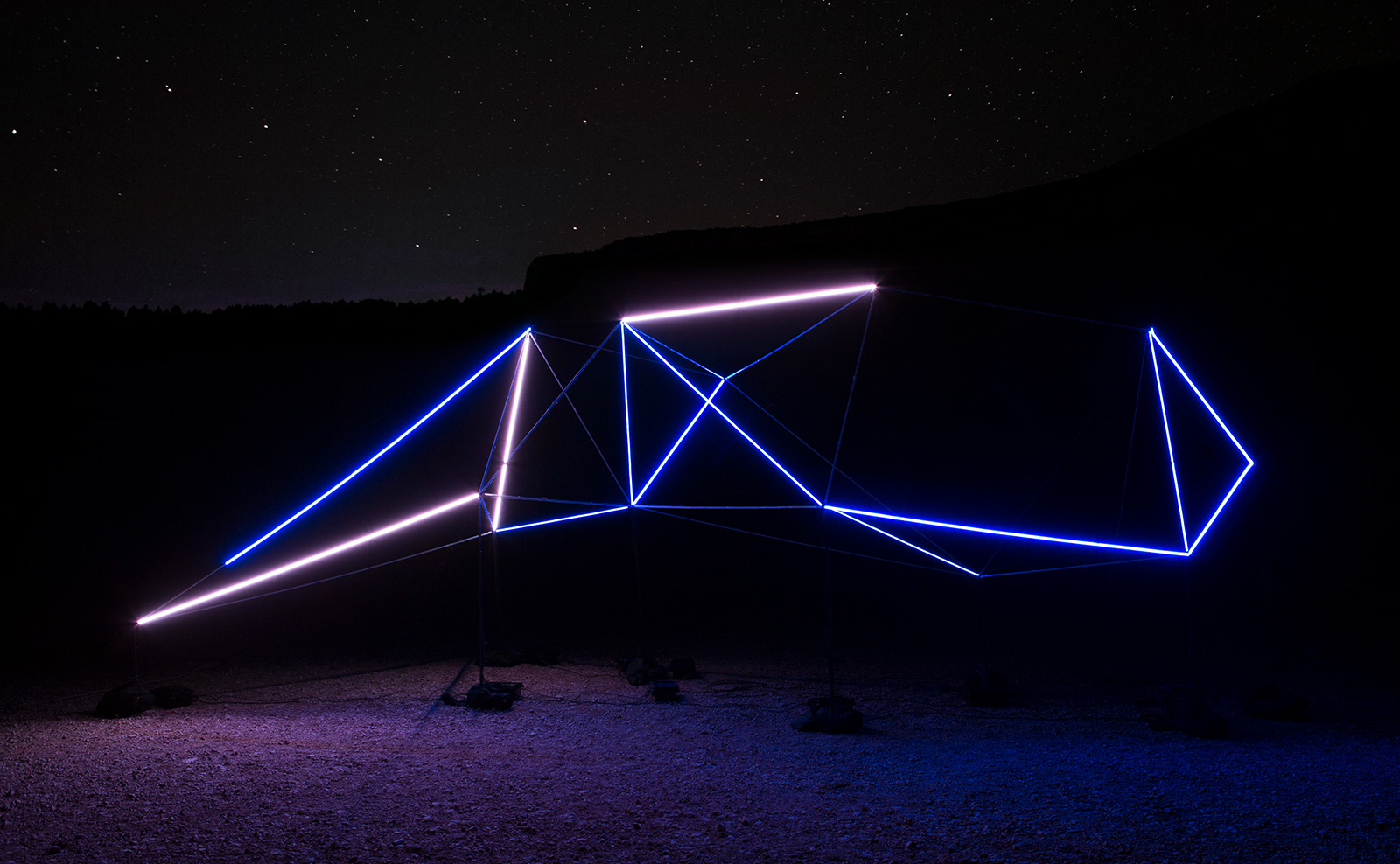 Intimately connecting it to its site, Nocte’s abstract reinterpretation of the mountainous backdrop was the visual focus of The North Face NightRay Fest.