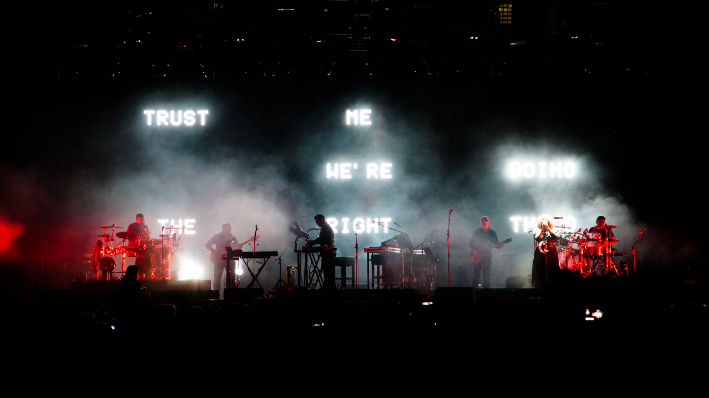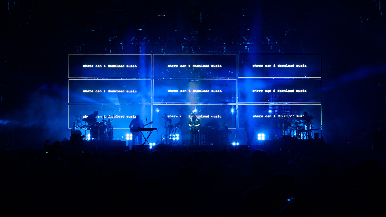 The Massive Attack live performances are characterised by the use of politically charged content. Video, images and text were updated on a daily basis and meticulously crafted to reflect recent events and local news.