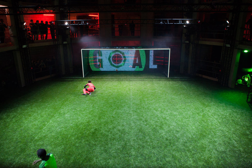 The digital goalpost kept a live score and measured each player’s shooting accuracy. Custom animations were triggered by 16 motion sensor cameras that tracked the exact placement of shots as they striked the goal. The scores were determined by a highly-engaged Facebook live audience that judged and voted for.