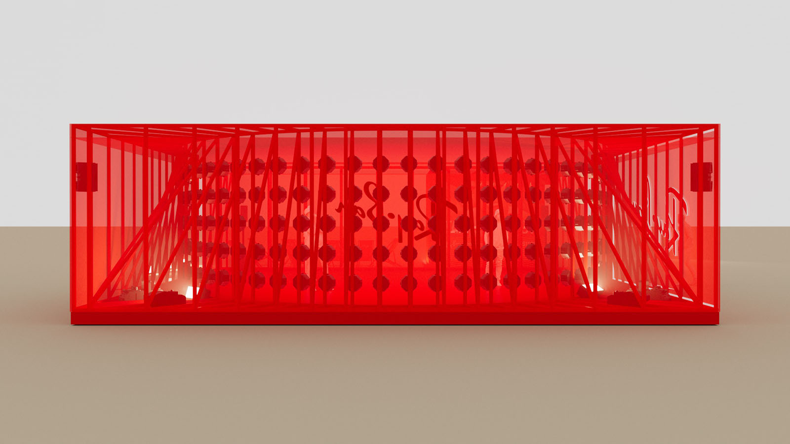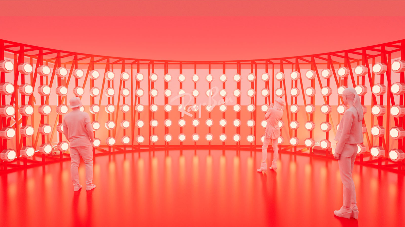 The pavilion was constructed around a light installation consisting of a radial array of lights. Through careful programming of light and sound,the entire space comes to life in a synesthetic journey, transitioning through the vibrant colors found in the Ray-Ban Wayfarer collection.